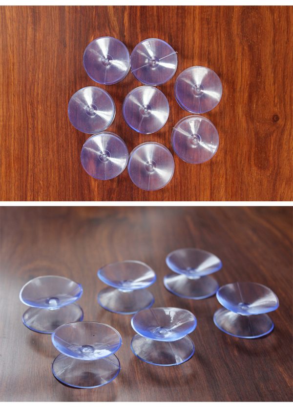 Cốc hút kính hai mặt là núm nhựa, cốc nhựa được làm từ chất liệu silicon mềm. Hít tốt ở các mặt phẳng như mặt kính, mặt đá, mặt gỗ, gạch men, …